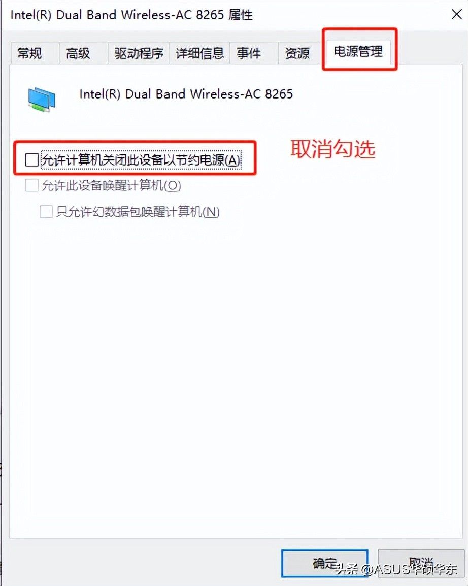 03、切换选项卡到“电源管理”,取消勾选“允许计算机关闭此设备以节约电源”。这样,系统就不会因为系统空闲而断开网络连接,导致掉线了。