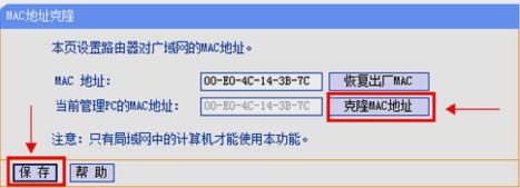 6.最后,单击“克隆MAC地址”,然后单击“保存”,路由器将自动重启,并最终完成路由器设置。