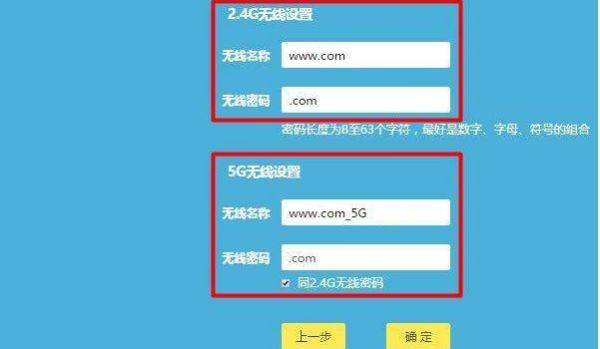 6、接下来路由器会让设置副路由器的WIFI名称和密码.可以和主路由相同也可以不同。