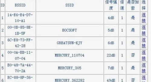 7、在扫描到的信号列表中选择第一台路由器SSID号,如下图中SSID,点击“连接”。