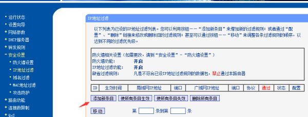 4、点击ip地址过滤,右侧点击添加新条目;