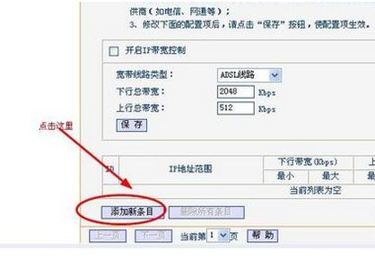 2、选择路由器页面的IP带宽控制,出现以下页面,选择添加新条目