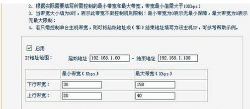 3、然后设置一下起止ip段,在设置一下上行带宽和下行带宽,然后保存,重启路由器即可。