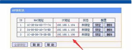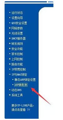 2、首先我们可以先看看自己的路由器上面有那些IP地址,点击左侧导航里面的IP和MAC绑定-ARP映射表!!