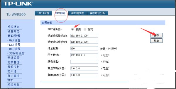6,找到路由2的DHCP,改为开启(一般默认就是开启的)。