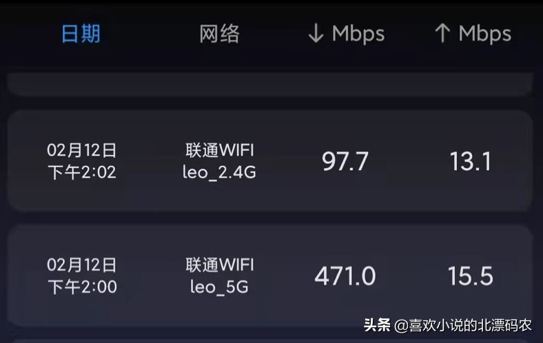 此外我发现2.4g的和5g的网络差别很大,下图是前段时间回家测试的。