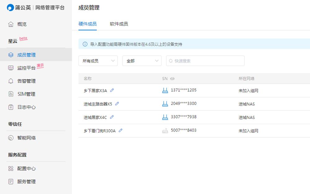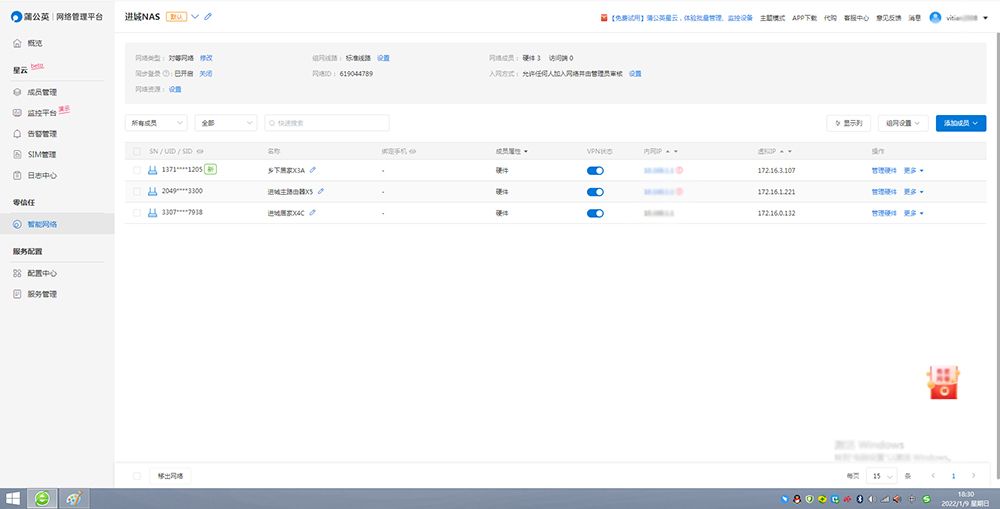 我这边父母家里、公司里都用的蒲公英家的路由器,现在我家里也有了蒲公英的,组网之后就方便了,想看看父母家里的摄像头,就把父母的添加到虚拟局域网里,想访问公司的OA就把公司里那台添加到智能组网里。免费版可以加三个成员,个人用完全够用了。