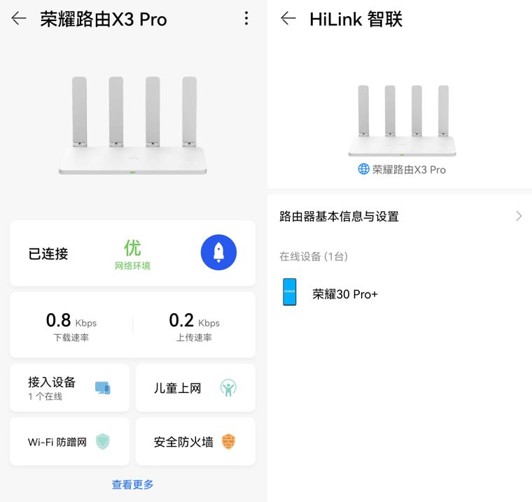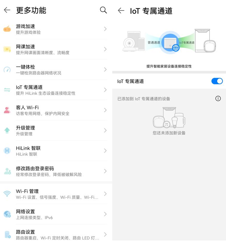 荣耀路由X3 Pro的一切配置都可以在智慧生活App中进行管理,查看路由器运行状态、信息,智慧家居流行的今天,荣耀路由X3 Pro也为用户量身打造了IoT专属通道,这个可以让家里的智能家居链接更加稳定,还有儿童上网管理、WiFi防蹭网、防火墙等功能应有尽有。
