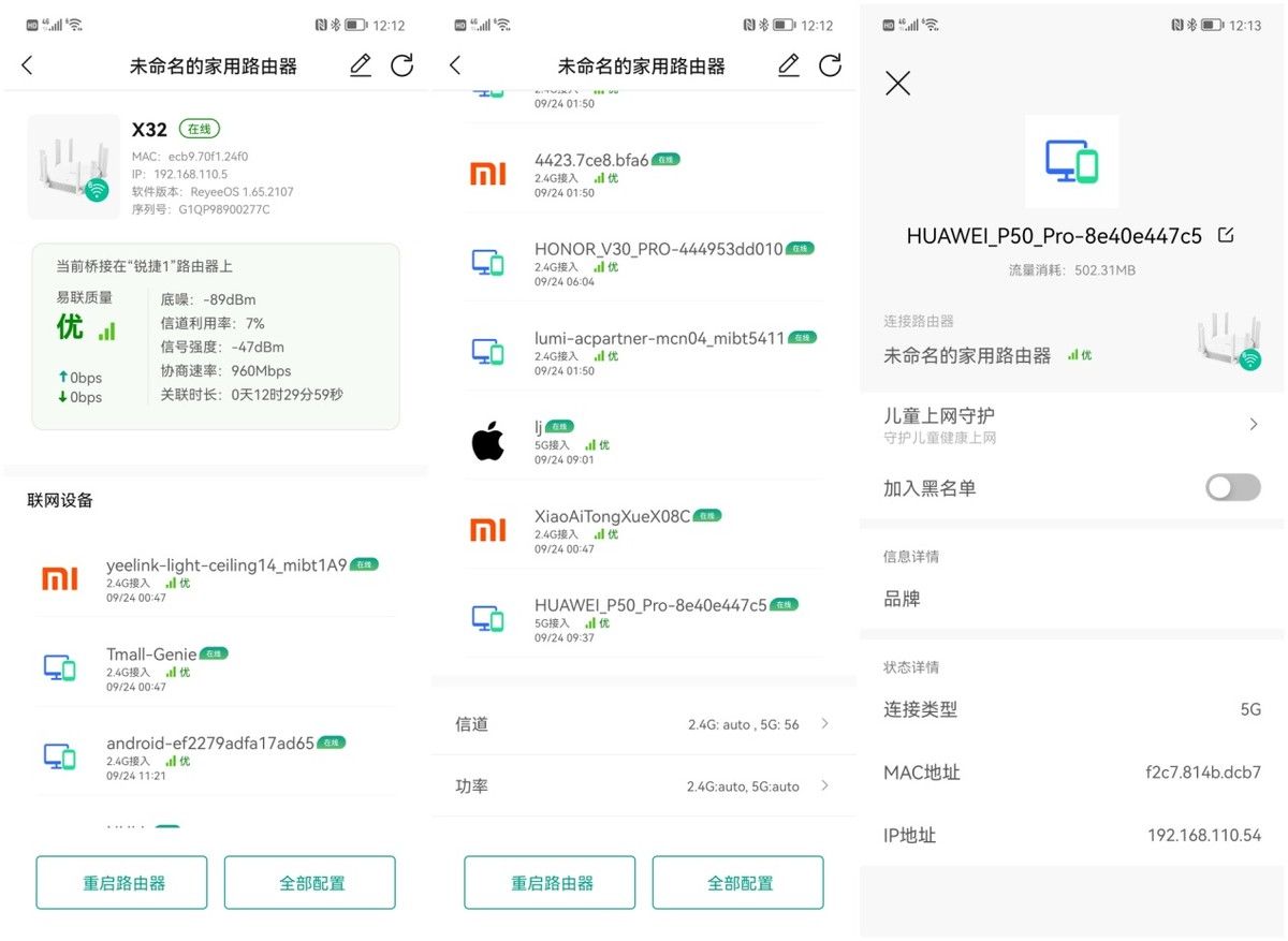 技术上,锐捷星耀X32千兆路由器采用4X4 MU-MIMO高阶架构,支持WiFi-6最新的一代无线技术,无线速率并发达到了3202Mbps,相对于AC1200而言,不仅信号覆盖(抗干扰)列强,网络延迟也更低,同时带机数比AC1200翻了一倍,理论上最高256台。