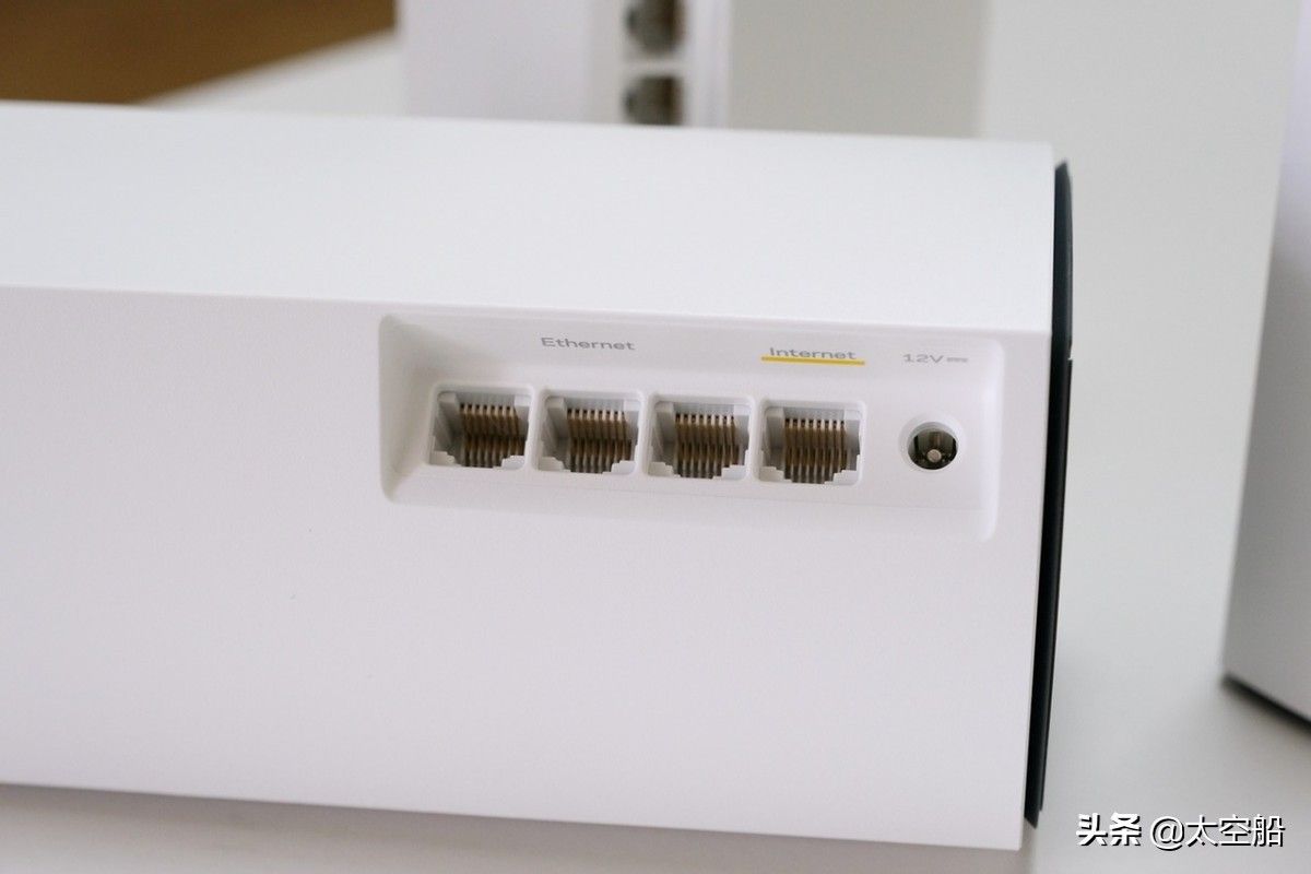 路由器的网口和电源插口都安排在机身背面下侧,做了内凹处理,网线和电源线接入就不会显得突兀。MX5500系列三只装的每只路由器都配备了1个千兆WAN和3个千兆LAN端口,能够满足绝大多数人的使用需求。