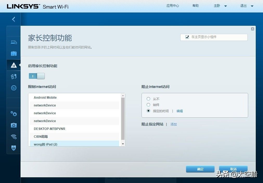 访客访问、家长控制功能等路由器常见的功能,领势MX5500系列都具备了,设置方法也很简单。其中家长控制功能,不但可以指定控制设备的上网时间,也可以阻止浏览指定网址,给孩子们营造一个科学健康的上网环境。