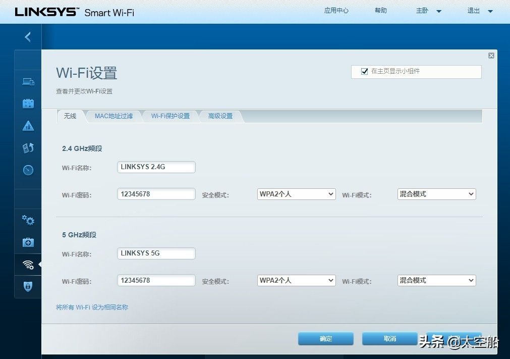 在默认的混合模式下,当2.4G和5G频段的WiFi名称一致,设备能搜索到WiFi名称只有1个,2.4G和5G两个频段合并;若是两个频段的名称不同,而设备就可以搜索到两个对应的WiFi名称。如果是只能支持2.4G的设备要联网,那么就需要取消双频合一,或者进入高阶模式,将两个频段进行分离。至于连接选项,一般用户选择默认即可。