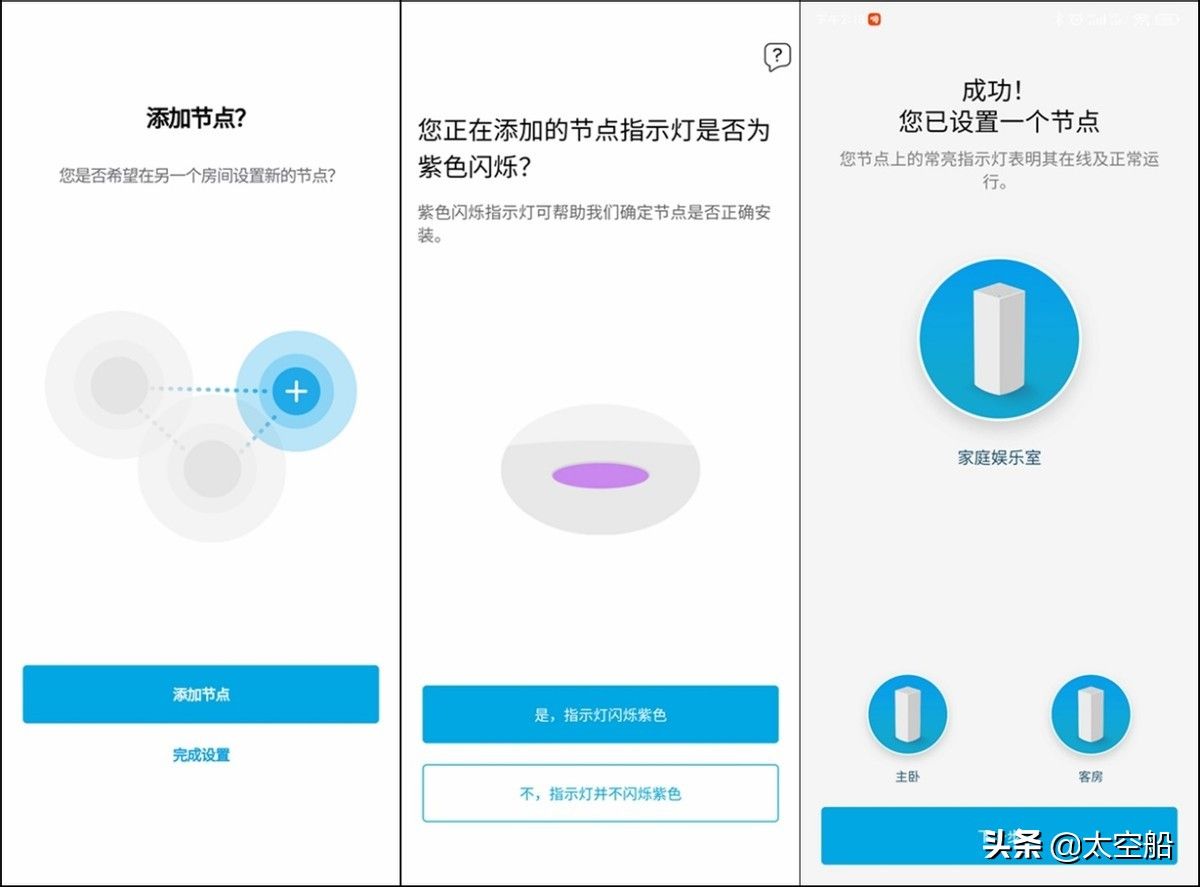 节点的添加同样也有详细的图文向导说明,跟着提示一步步设置就能成功,只不过节点的添加大概需要两三分钟,需要稍加等待。节点成功添加之后,界面就会显示所有已经组网的路由器图标。