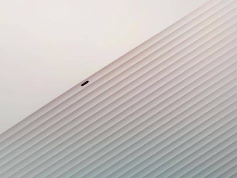 正面一半为光滑的哑光面板,一面为条状凹凸线条设计,将指示灯化繁为简,只有一个指示灯。