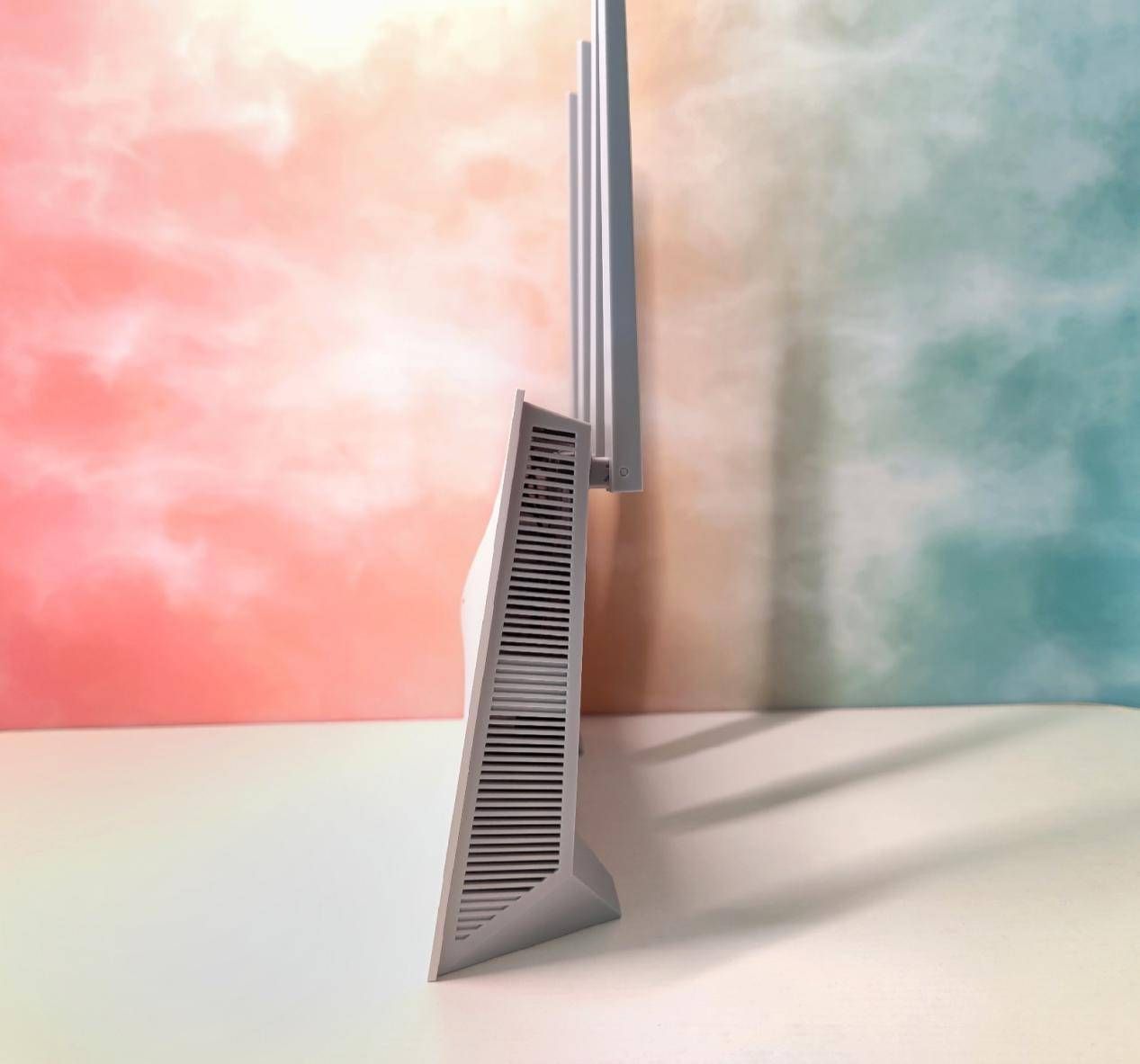 在路由器的侧边也采用镂空的设计,增强散热的。所以整个机子在运行的时候基本不怎么烫,现在前面的几代在运行的时候都非常的烫。同时在保证散热的同时,整个路由器的外观也是非常的漂亮,没有做的非常的丑陋。
