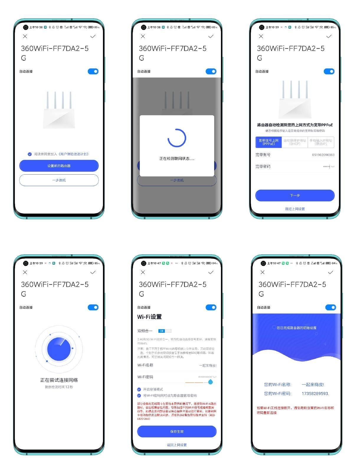 路由器配网过程:连接路由器WiFi→设置新路由器→宽带拨号/静态/动态→WiFi设置→完成