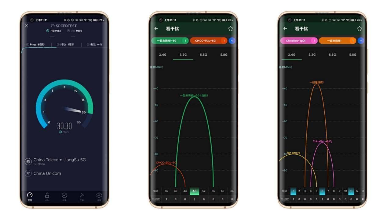 穿墙情况也特别优秀,穿三面墙毫无问题,网络速率还能保持良好水平。在穿墙测试中也非常的优秀。当隔了一栋墙之后,网络测速只降了三分之差。在80平米的房子能够覆盖基本所有的范围,而且处于一个满格信号的状态(2.4G),在相对较远的距离能够保持5G网络仅仅缺一格。如果手机支持同时连接双频WiFi的话,体验会更加的好。