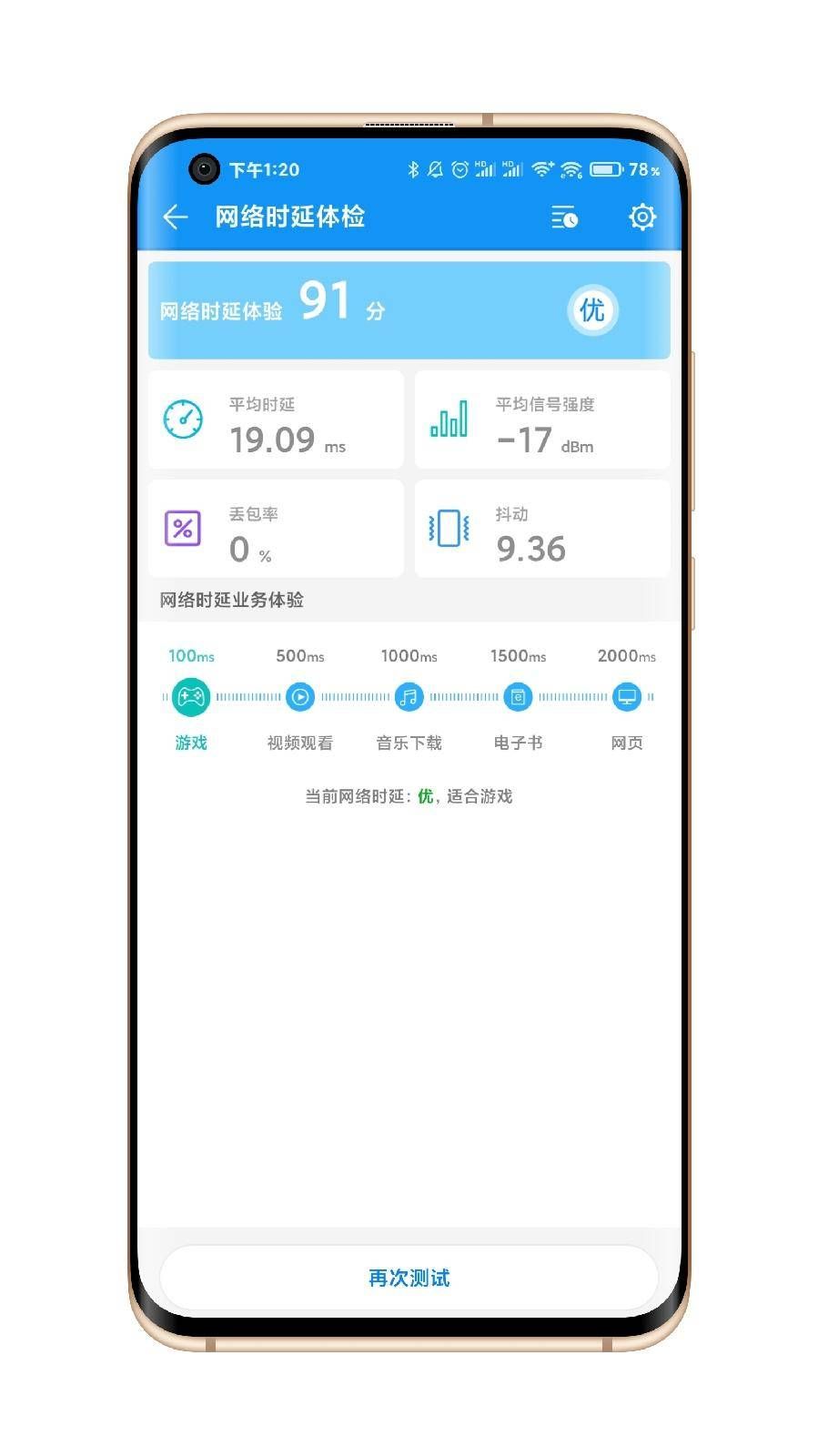 当手机连接上,WiFi6路由器,手机上亮起了闪闪发光的6标志,从以上数据可以得出结论,V6G还是很优秀的,不管从网络延迟、下载速度、整体稳定性都是无法挑剔的。丢包率能够达到0%,不存在丢包的情况。当然也从以上数据也发现了不足的地方,说明网络抖动还有待提升。用上这款WiFi6给我的感受就是延迟很低,不论玩在房间里任何的地方玩游戏延迟都能达到很低的水准,从来没有出现过卡顿的情况。