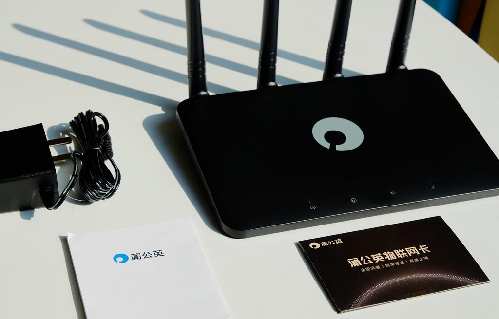 包装里面除了路由器外,还有一个电源适配器、一张物联网的流量卡,以及说明书三包凭证。赠送的蒲公英物联网卡可以免费使用3个月,小程序激活即可使用。