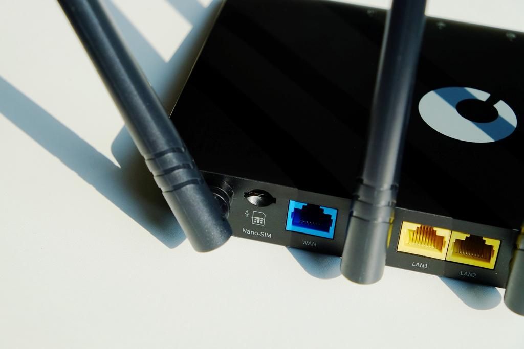 背部的接口方面,蒲公英X4C路由器设计了一个百兆自适应WAN口,还有两个百兆自适应LAN口。相较于普通路由器,蒲公英X4C路由器增加了一个Nano SIM插槽,插入物联卡就可以直接使用,这也是这款路由器的亮点之一。