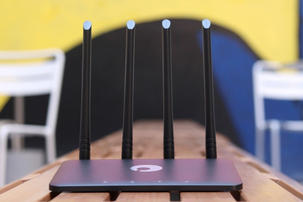 从包装里取出蒲公英4G路由器X4C,其外观设计和材质质感还是不俗的。蒲公英白色的图标映衬在黑色的机身上,四根天线很长,WiFi和4G都用的这四根天线,一看就让人觉得信号很强。