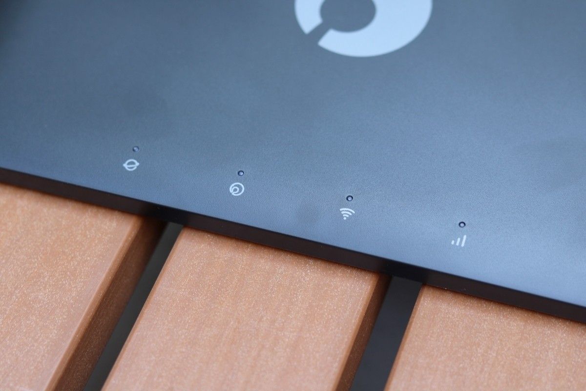 在机身最薄的前端还配有四个指示灯:电源、组网、WIFI、4G。在路由工作时一目了然,非常醒目,非常清晰。
