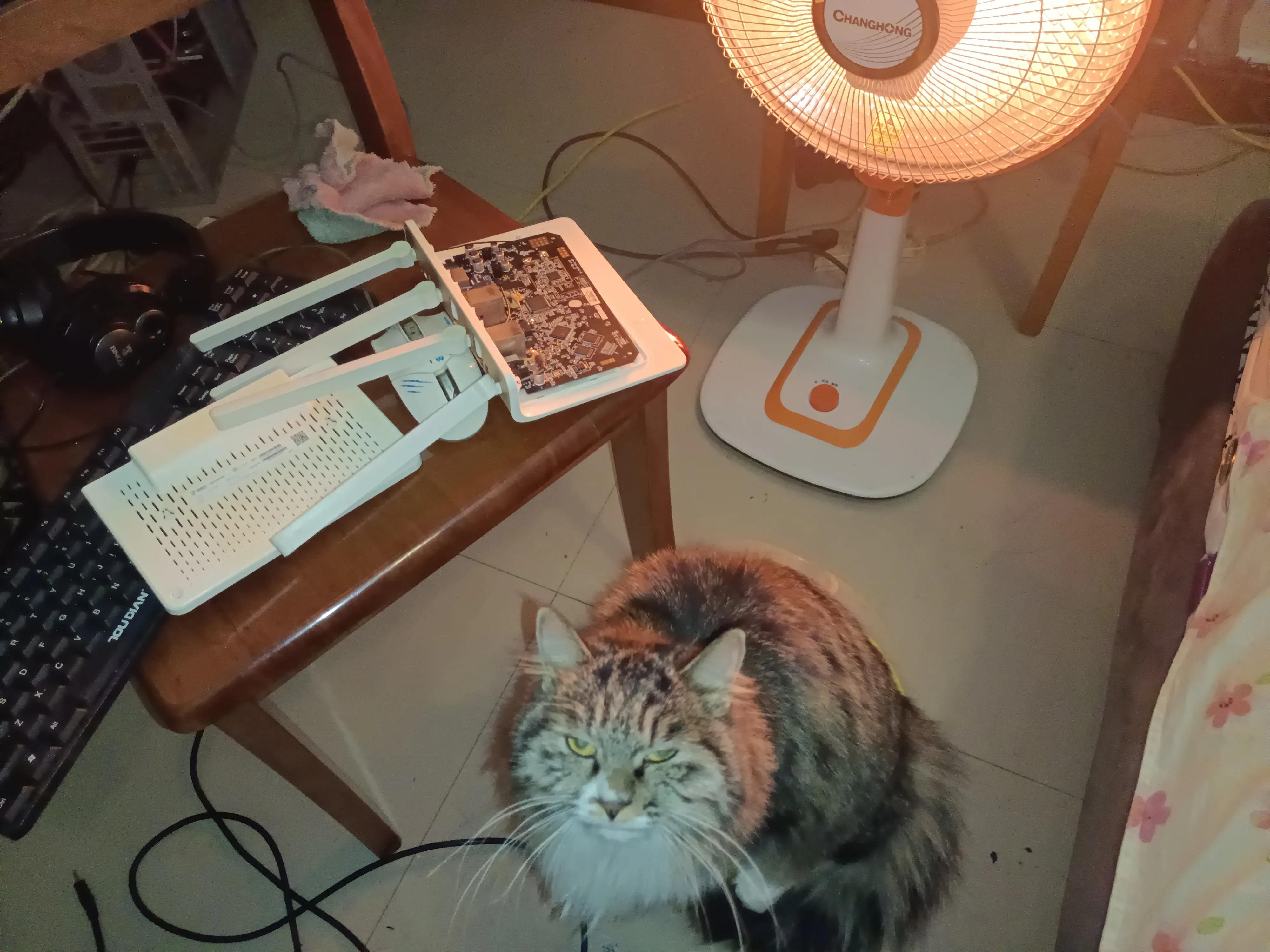 洗好后用毛巾擦干水分放到电暖扇下面烤上20分钟,顺便把猫主子也烤烤。