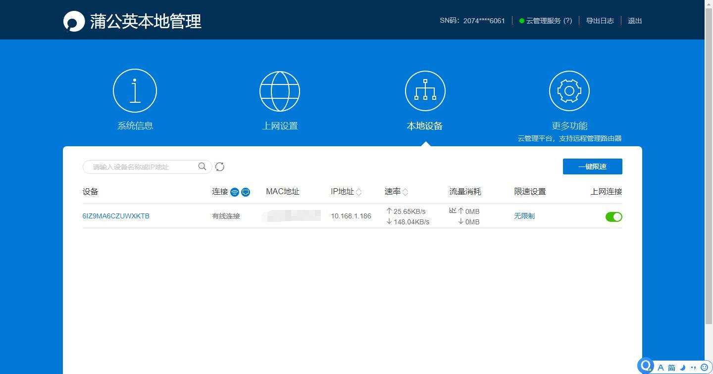 当然了以上两点其实不是蒲公英系列路由器最大的特色,其最大的特色在“更多功能”当中,这个选项其实更像是我们玩游戏时候的“进阶玩法”。在输入贝锐账户后就可以登录到网络管理界面,在这里可以说是能够让所有高等级的玩家大开眼界。