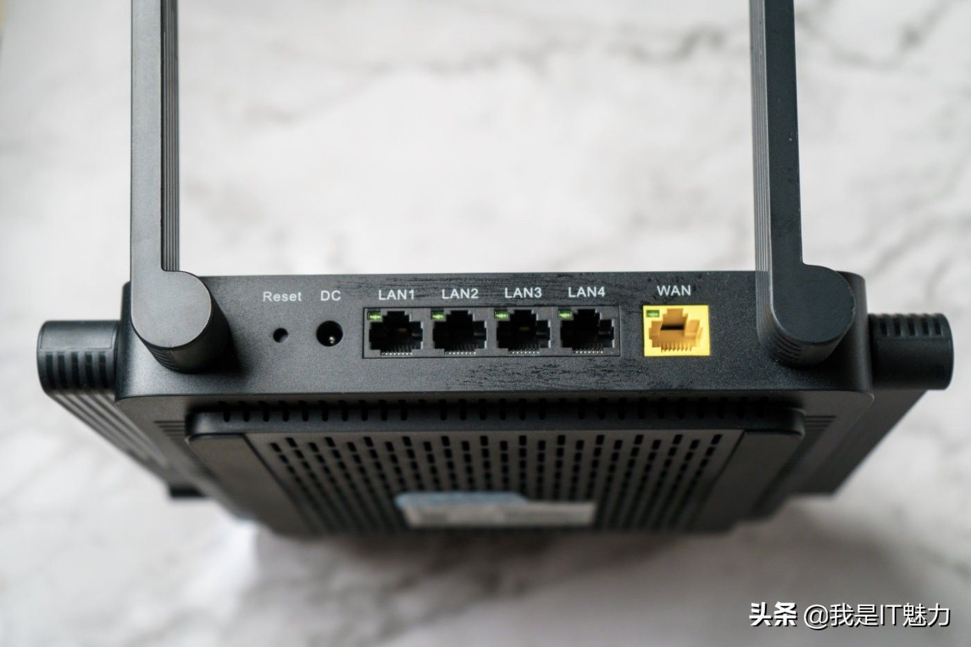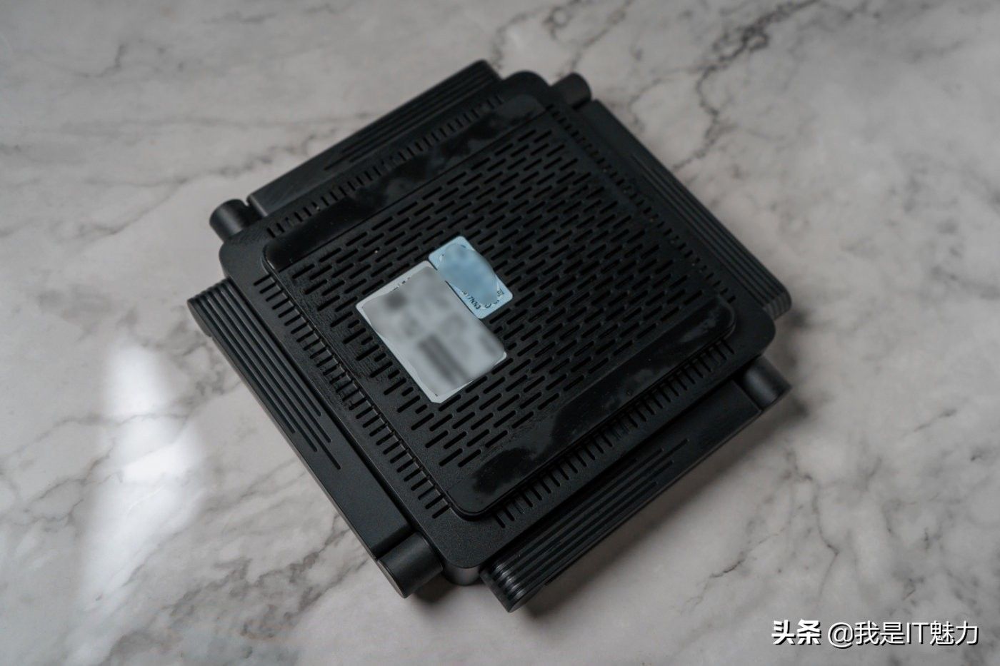 机身四周布满了八根可折叠天线,其中四根为2.4GHz天线,四根为5GHz天线,5GHz频段支持MU-MIMO技术,总速率达到了3200Mbps(2.4GHz总速率为800Mbps,5GHz总速率为2400Mbps),这样设计蛮好的,目前仅支持2.4GHz Wi-Fi多为一些智能家电,而手机平板等对网速需求高的设备基本上都支持了5GHz Wi-Fi。