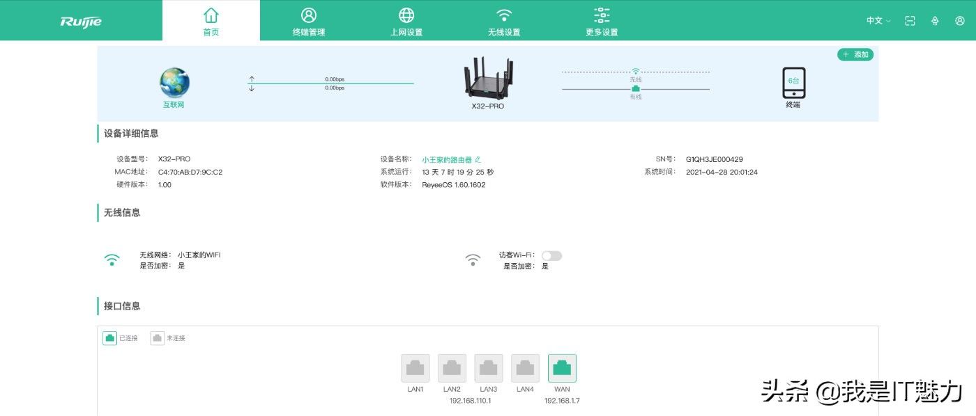 路由器后台管理至关重要,锐捷星耀X32 PRO路由器的后台管理有网页端和小程序两种,网页端菜单简洁明了,能够快速找到每一个选项。