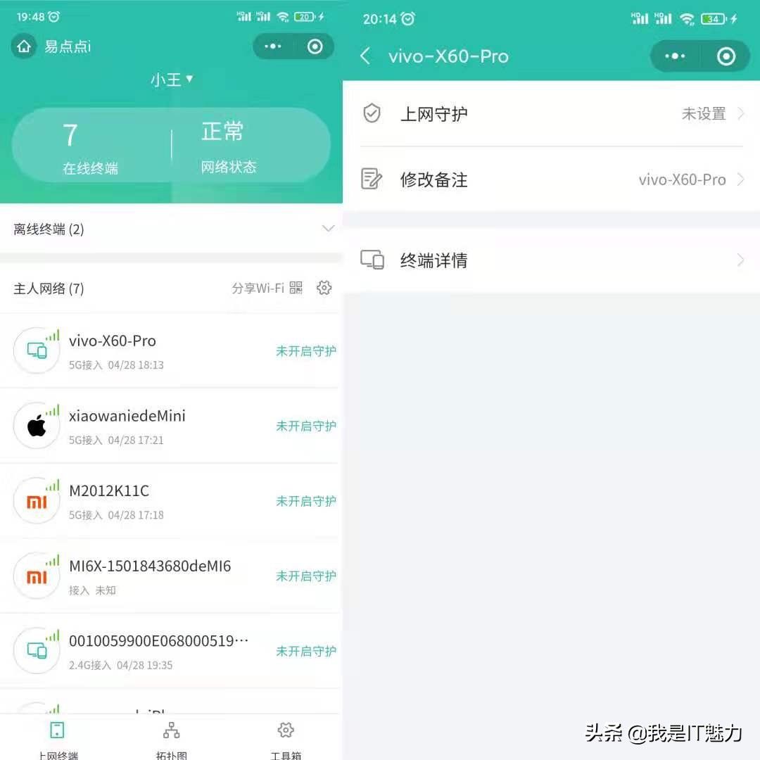 在小程序管理页面,可以查看当前联网设备,对设备其备注,方便区分管理,也可以拉黑蹭网设备,不过目前无法对设备进行限速,希望后续升级加入该功能。