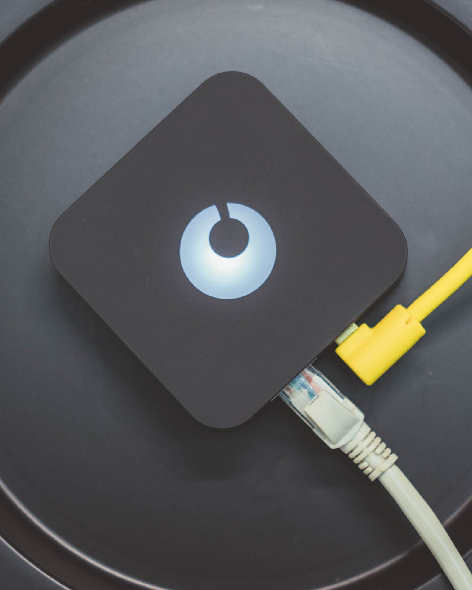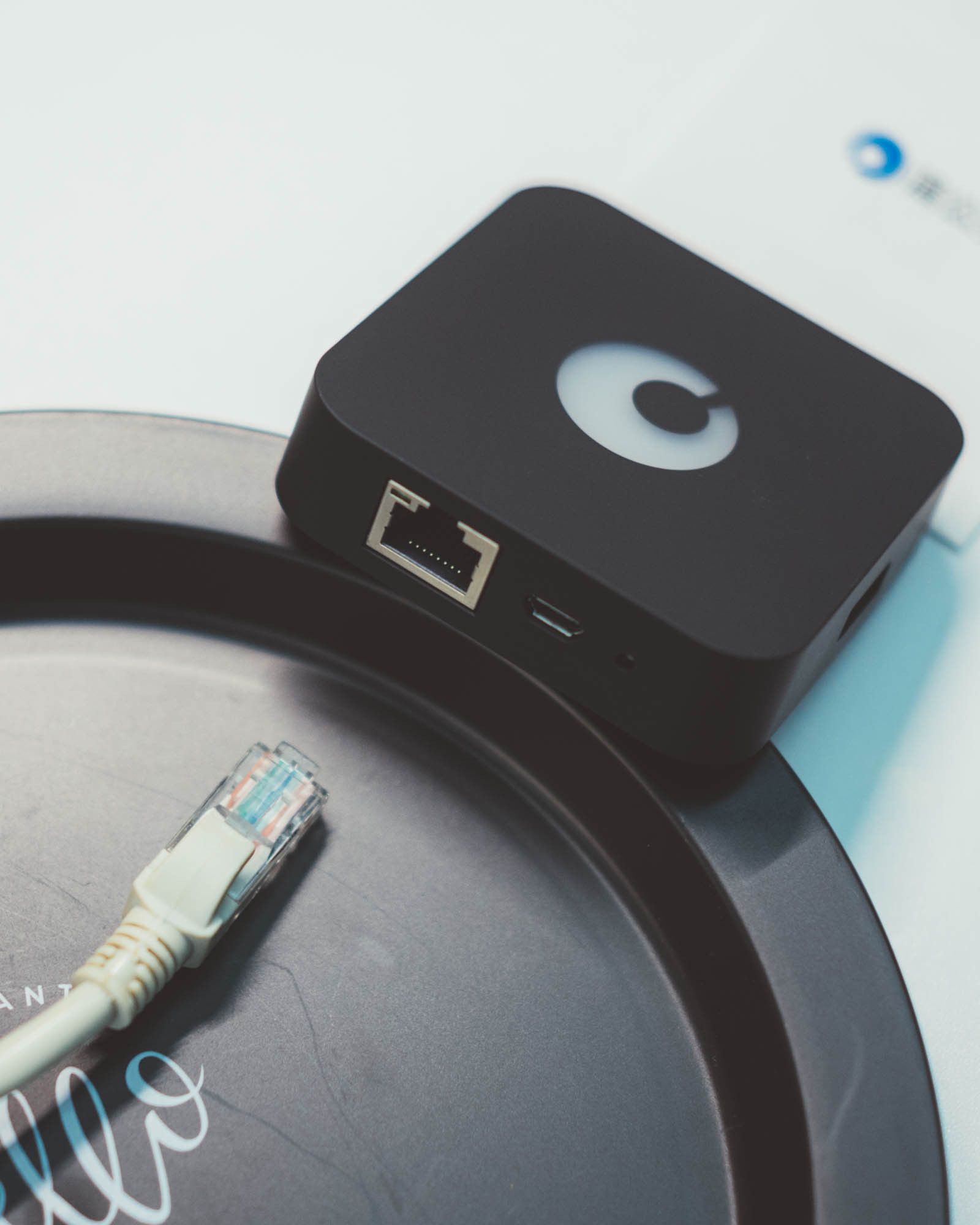 将网线插入蒲公英X1路由器中,连接电源,正面的蒲公英logo即亮起彩灯。刚启动那会,logo是白灯闪烁,随后是蓝灯闪烁准备组网配置。