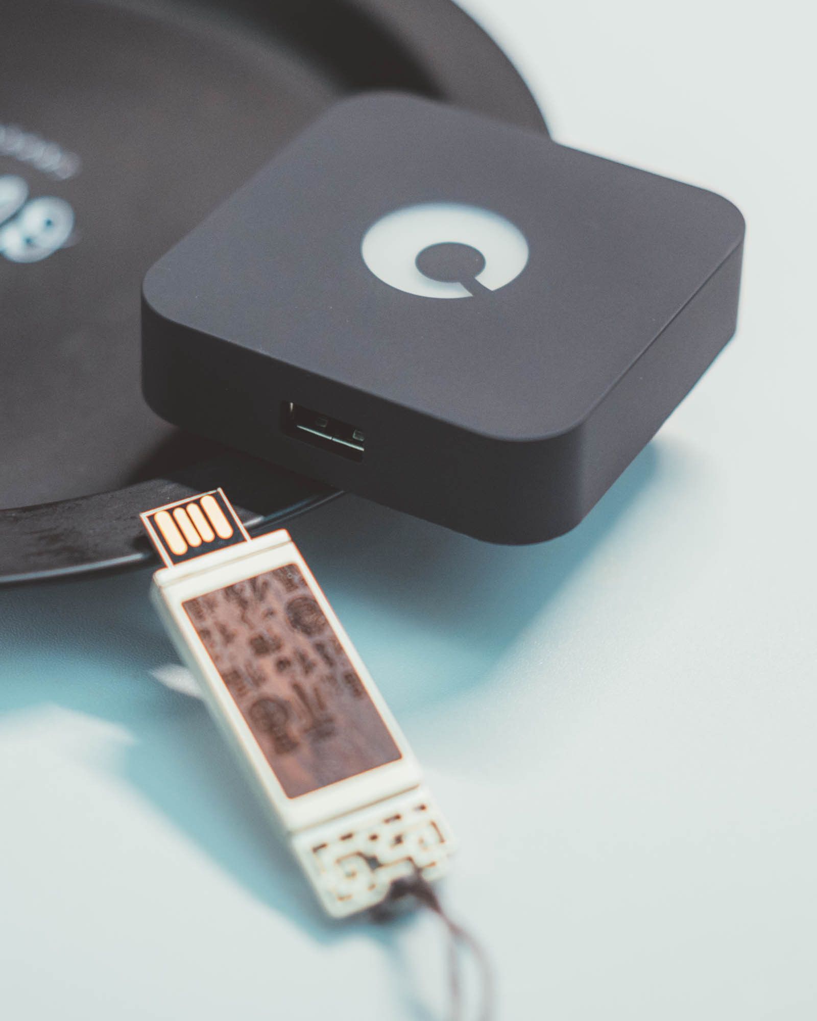 另外一侧是USB接口,USB接口连接U盘或者移动硬盘,连接主路由及从属路由的设备都可以在网络覆盖范围内访问到U盘或移动硬盘内的内容。也正是我们最开始要解决的问题,搭建一个宿舍4人共用的存储空间。