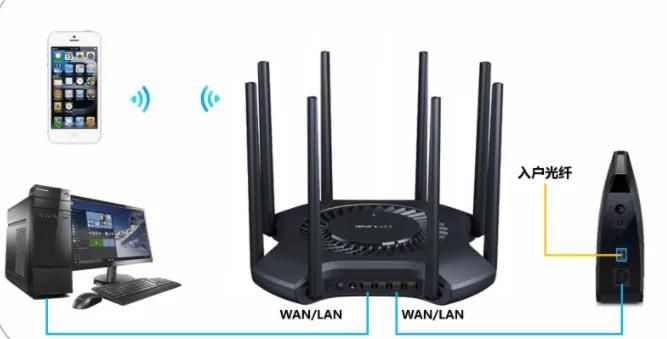 若是用手机则只需要一根网线,连接(网线插座)和(路由器WAN接口)即可。