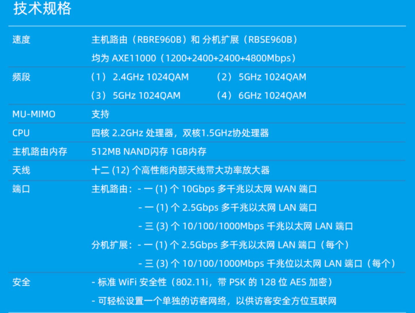 网件Oribi RBKE963B AXE 11000支持Wi-Fi 6E Mesh增强型网络,提供四个无线频道,分别为2.4GHz、5GHz、6GHz以及无线回程专用5GHz,支持16条数据流以及超低延迟网络。