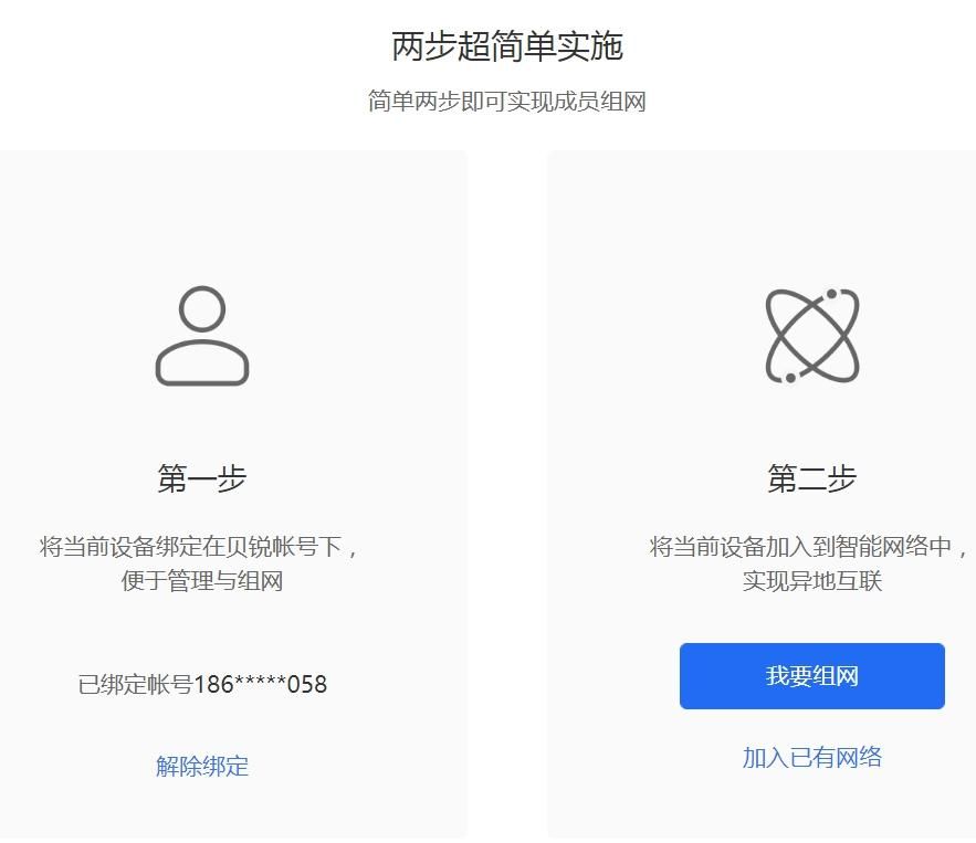 对于首次组网,可在设备管理界面,点选智能组网中的“我要组网”,然后登录Oray账号,再创建网络即可。
