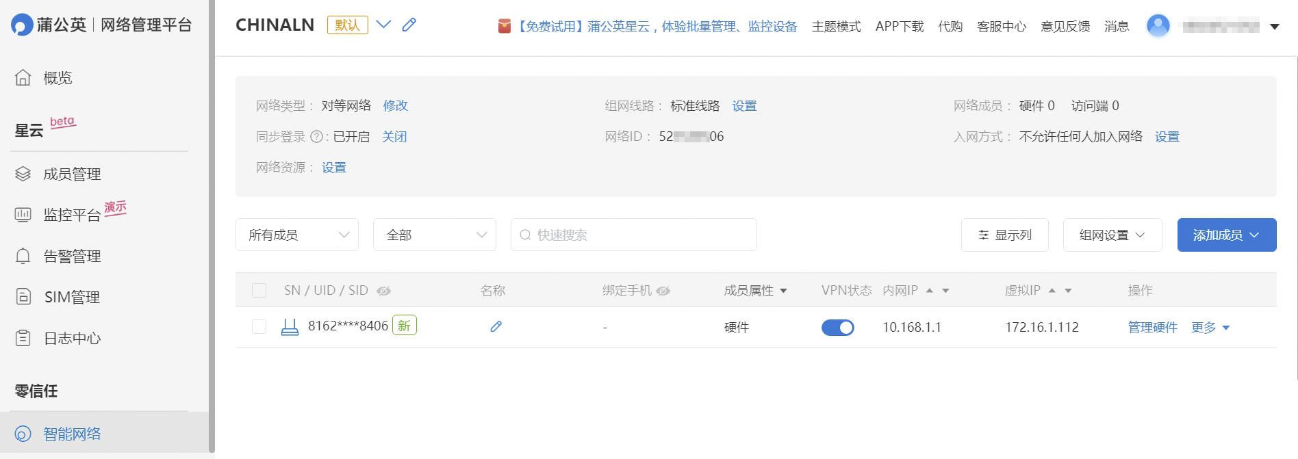 网络成员分为硬件成员和软件成员,蒲公英X4C路由器归属硬件成员,而电脑或者手机端的用户为软件成员。