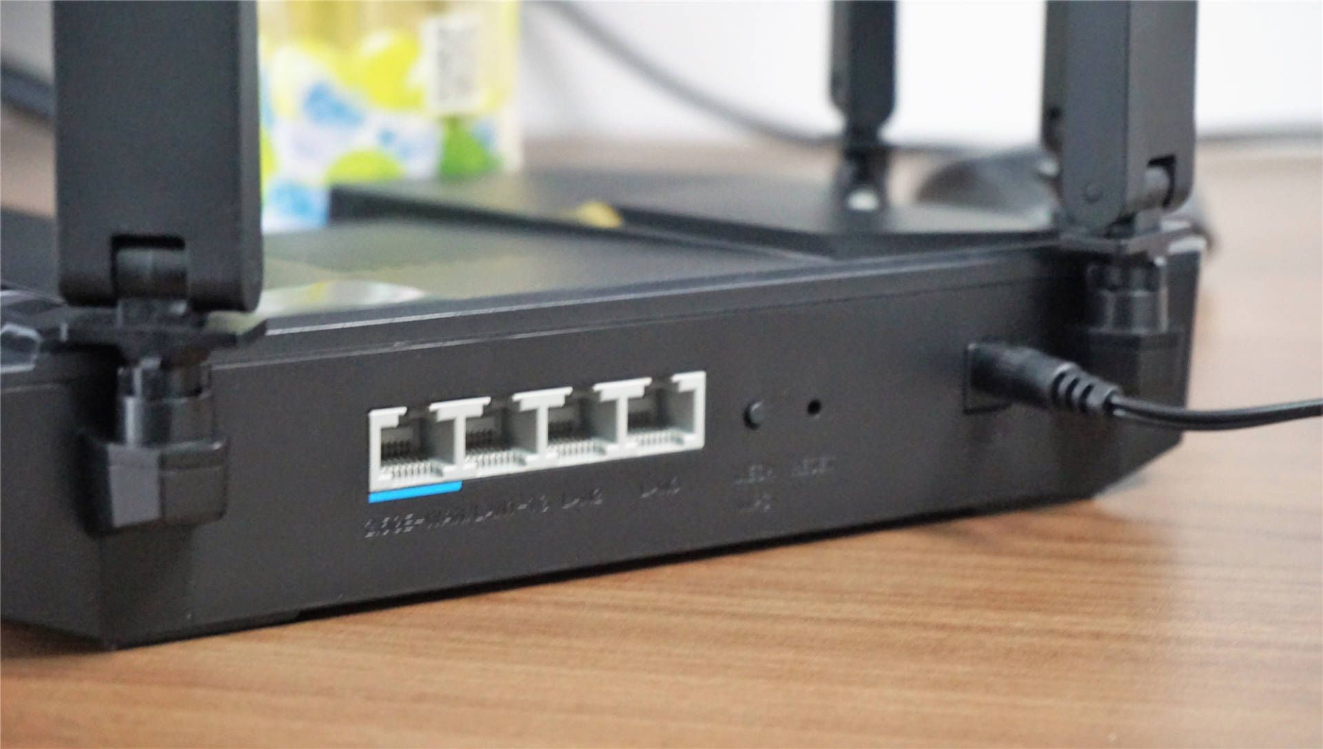 作为中兴自主研发的主芯片,它采用了采用了4核1.1Ghz CPU+8核NPU的组合,CPU性能提升120%,NPU性能更猛直达1400%。而产品的背部最为亮眼的就是一个2.5GE的网络接口了,而且可以同时兼顾了WAN/LAN/WiFi三种工作模式;除此之外,旁边还有三个普通的GE网口,再往右边就是一个mesh的组合按键以及一个Reset的按钮了。