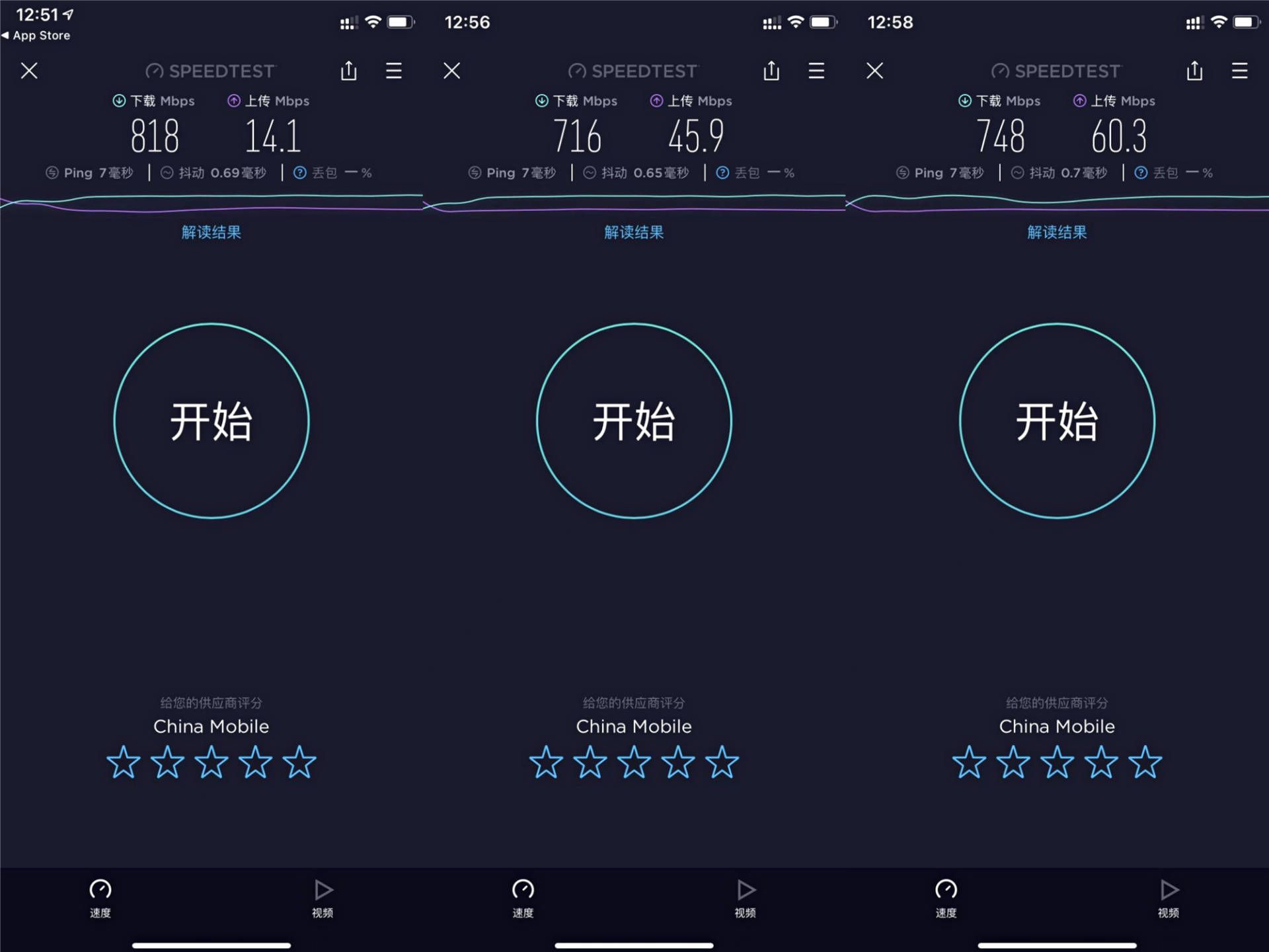 当然了,为了实时监测一下这款路由器的性能,我们也是用手机连上无线网之后,利用SpeedTest软件对于网速进行了一个监测,这样的一个千兆网络来满足我当下的需求,我觉得还是比较舒服的。