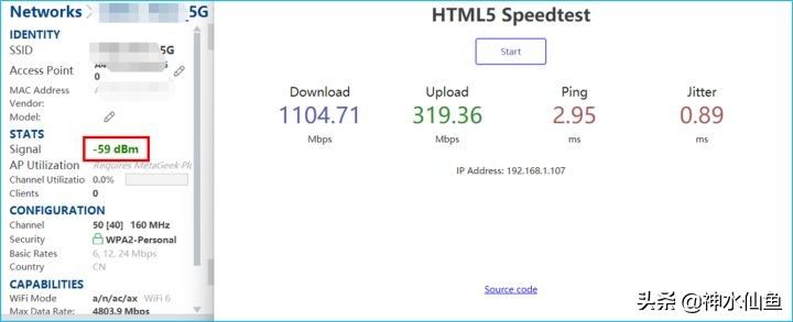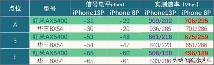 再来看iPhone 13P(WIFI6@80Mhz)和iPhone 8P(WIFI5@80Mhz)的测试情况: