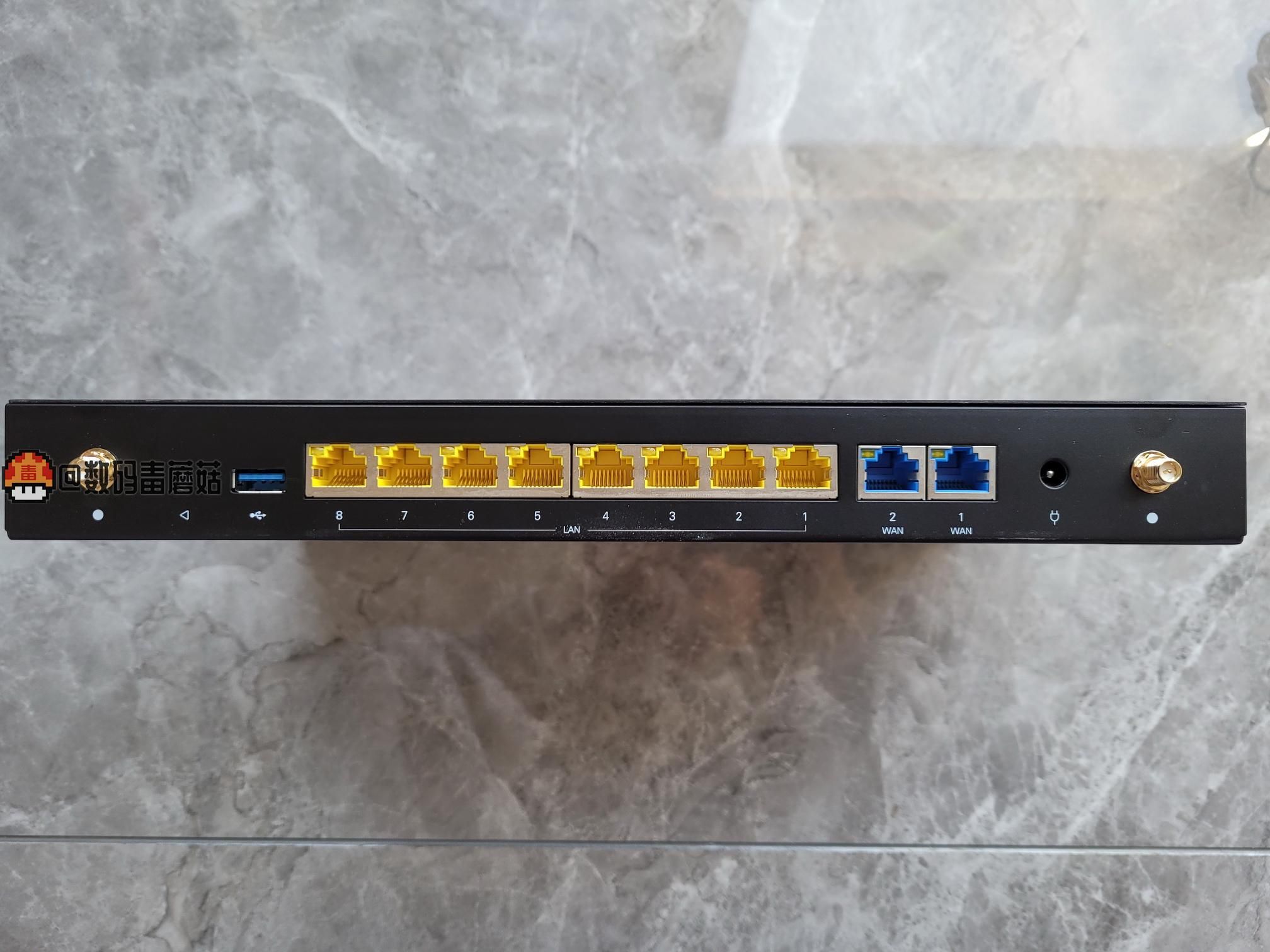 背面一览,双wan + 八lan,带一个usb3.0接口。