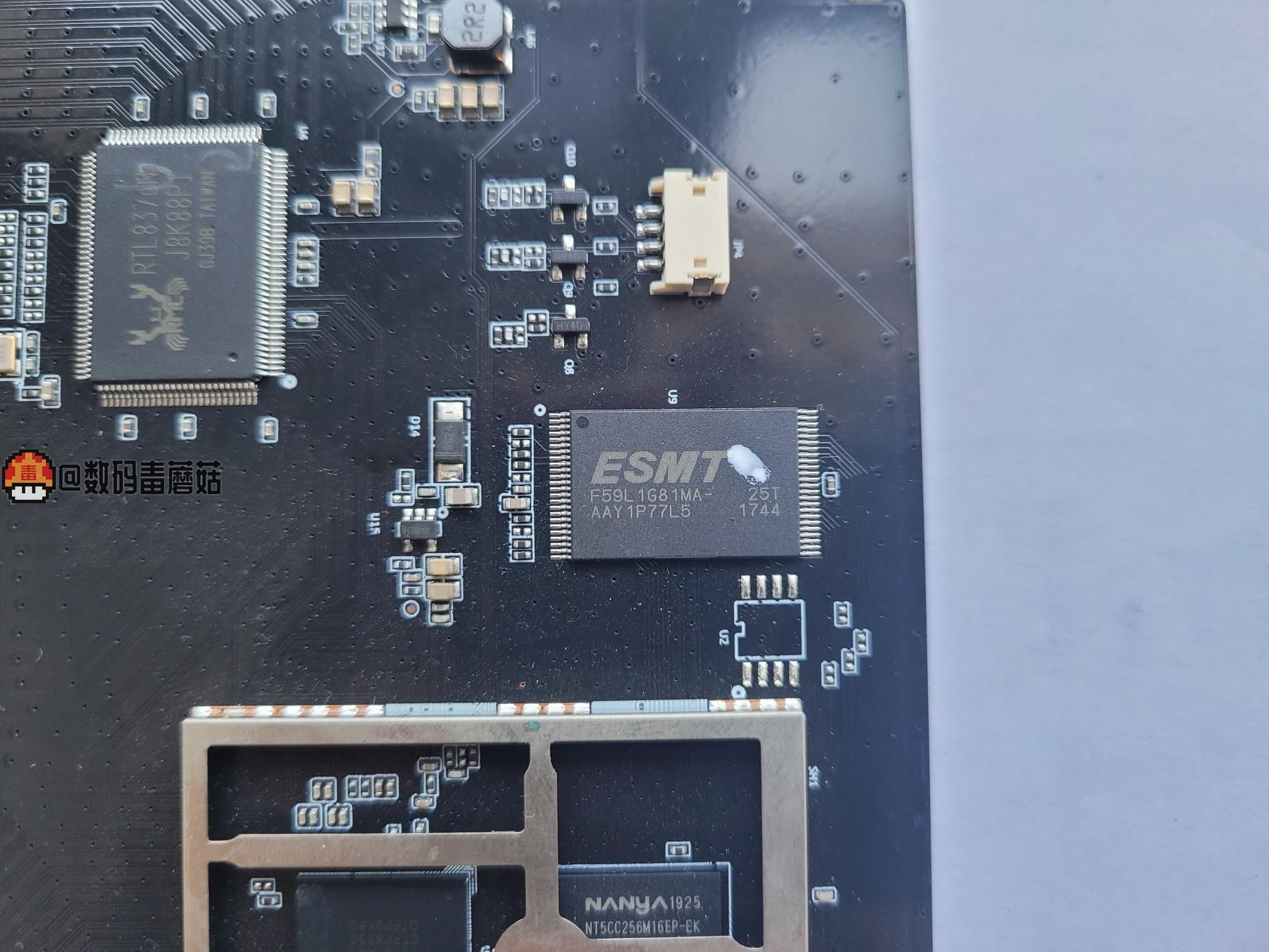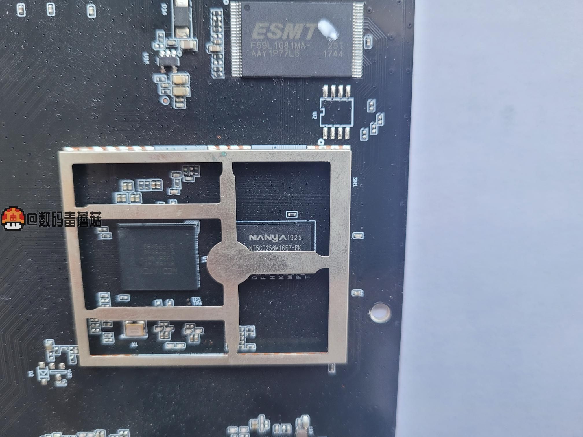 运存是NT5CC256M16EP-EK,来自南亚科技的512M LPDDR3存储颗粒。