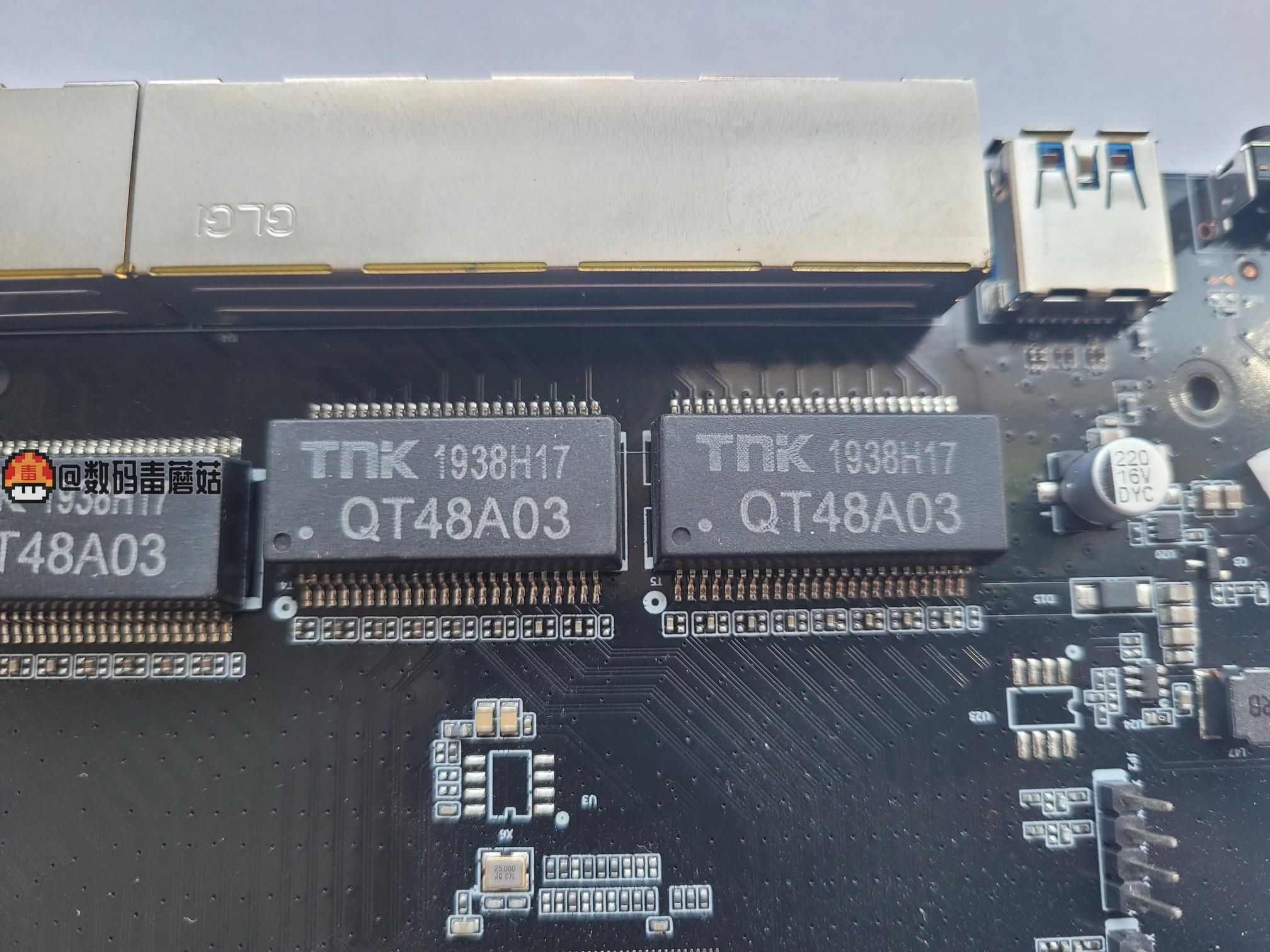 是不是觉得壳子挺大,板子才这么大点?其实不算小了,我之前拆过一个企业软路由,屁股大的壳子只有巴掌大的主板……多出的空间大概是为了散热好吧。那条红色线是用来连接我刚刚说的LED灯用的。