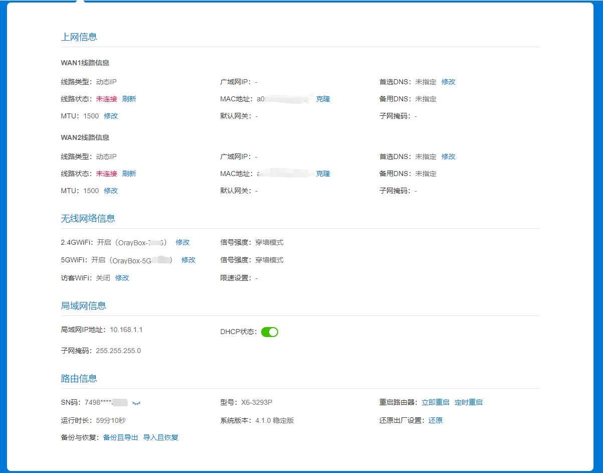 于是我开始物色一款支持双宽带接入的路由器。搜了一圈,发现蒲公英X6提供了原生双宽带支持,而且还是8网口,可以把交换机都省掉,正合我意!于是厚着脸皮找朋友要来这个路由器~