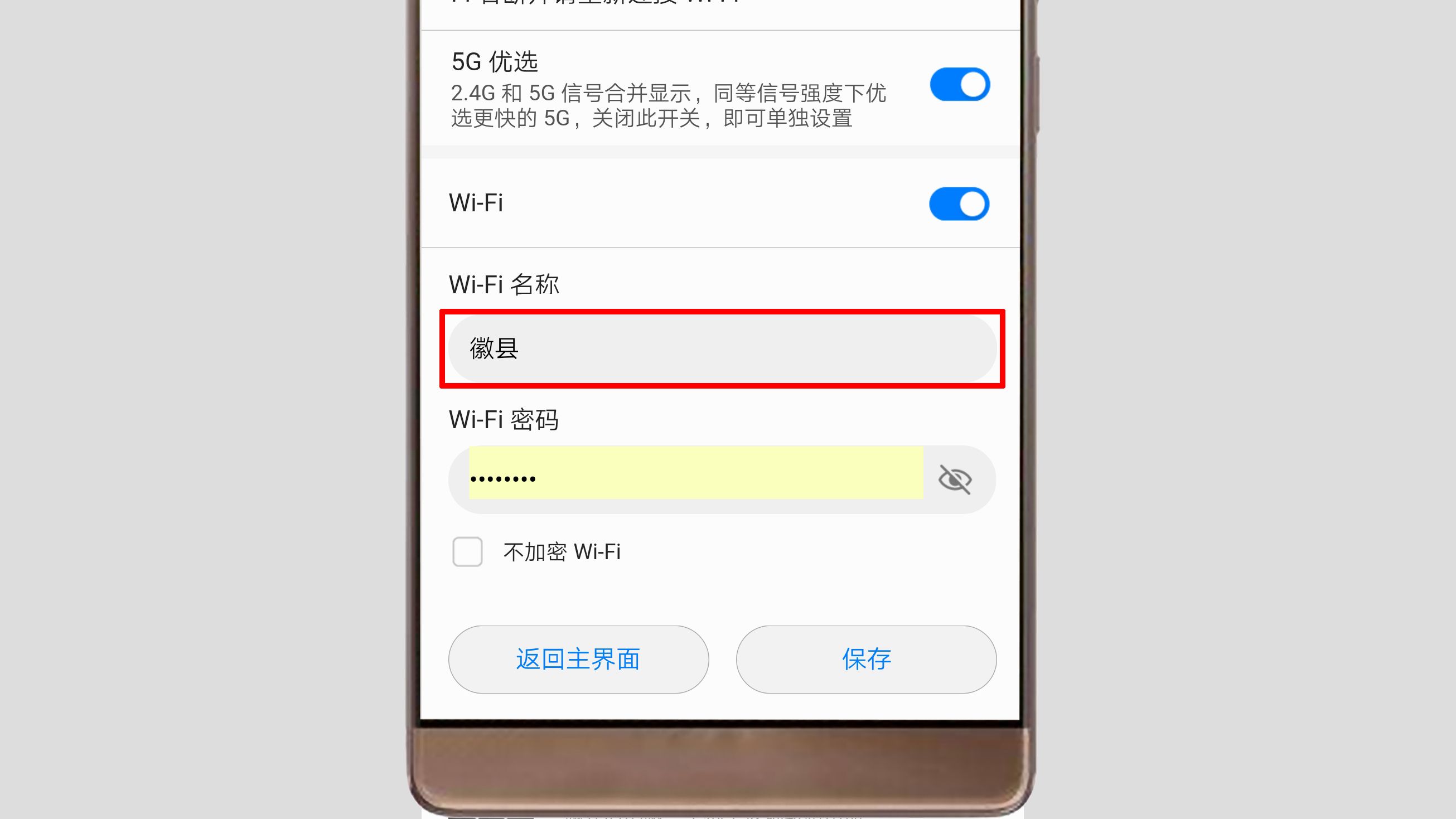 5、当文本框获得光标后,输入新的WiFi名称,点击“保存”,即可完成操作。