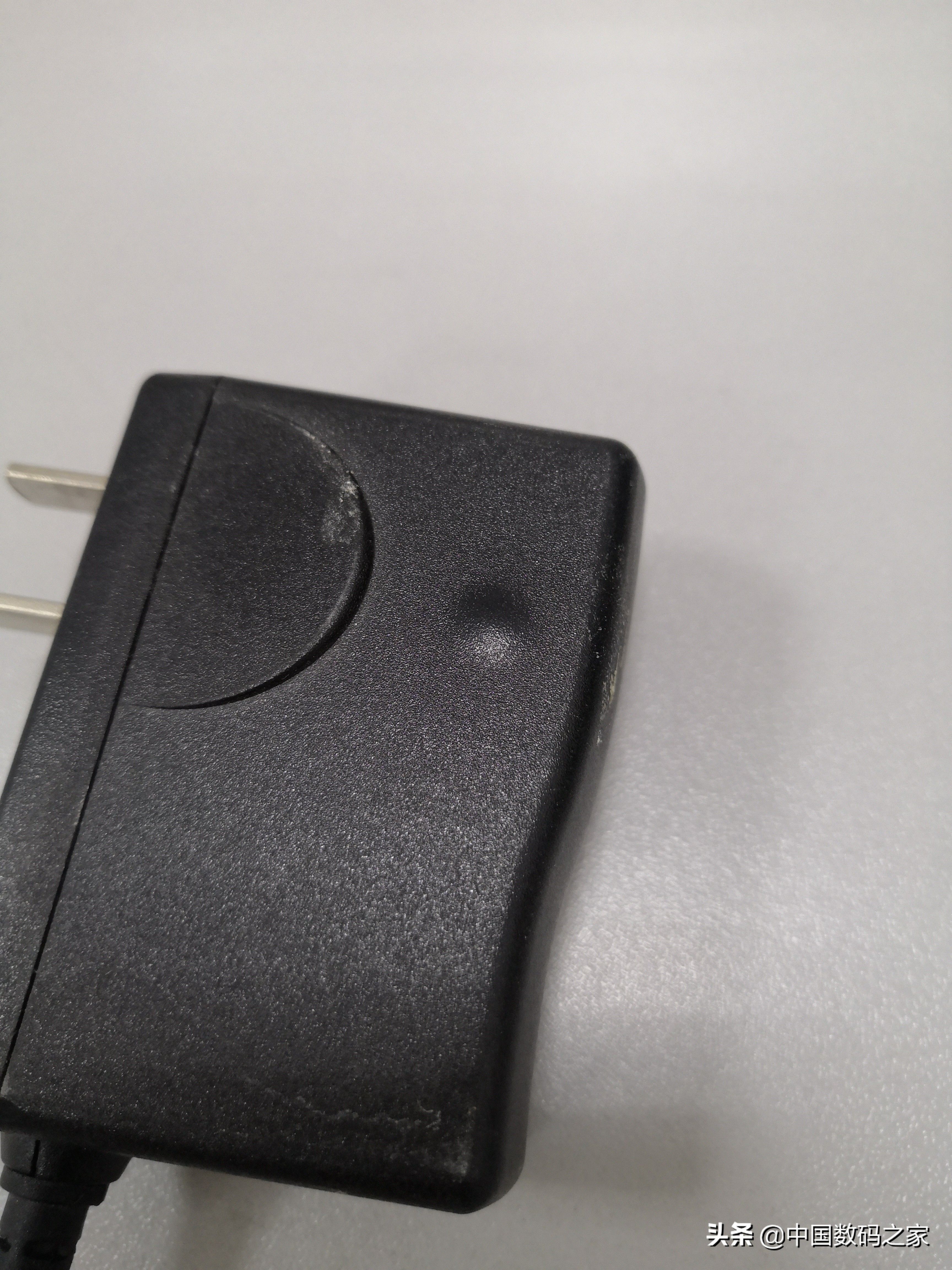 电源适配器常见故障,一般是高压电解电容器失效。这个电源从外观看基本正常,只不过一侧有个凸起,猜测是内部发热导致塑料变形。猜测电解电容器损坏可能性很大。