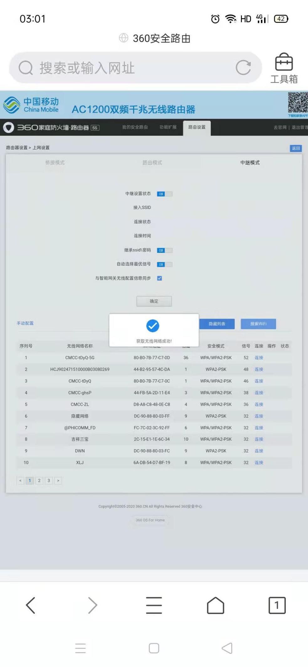 找到主路由器的WiFi信号并输入WiFi密码,点击连接,保存并重启之后新添加的路由器就可以使用了!