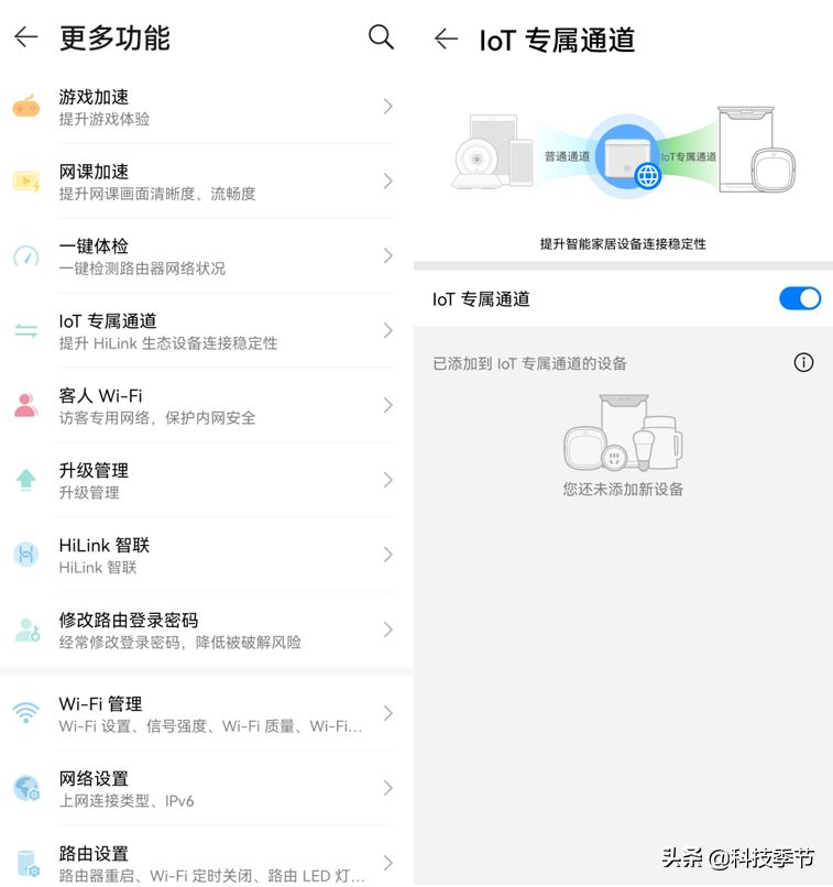 如果对于家里有两三百坪豪宅的用户来说,这款路由器也可以做到mesh组网,老旧的荣耀路由器也不要扔掉,直接按H键一键组网,让整个网络覆盖全家的角角落落,并且这款路由器还专属添加了iot华为智慧生态专属渠道,为了鸿蒙建设智能家居生态做了最大保障,可以优先保证后台所有智能家居的正常运转,数据监控等功能。