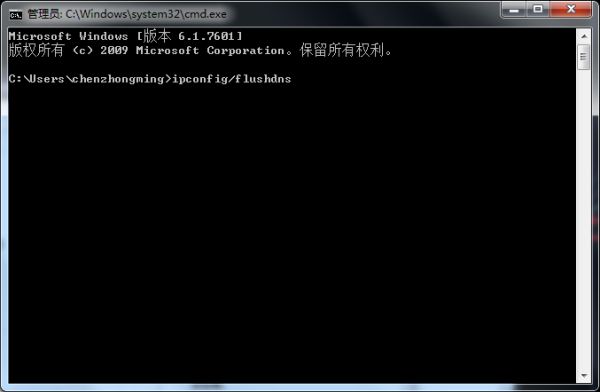 4、在msdos窗口下输入ipconfig/flushdns按回车键确认。