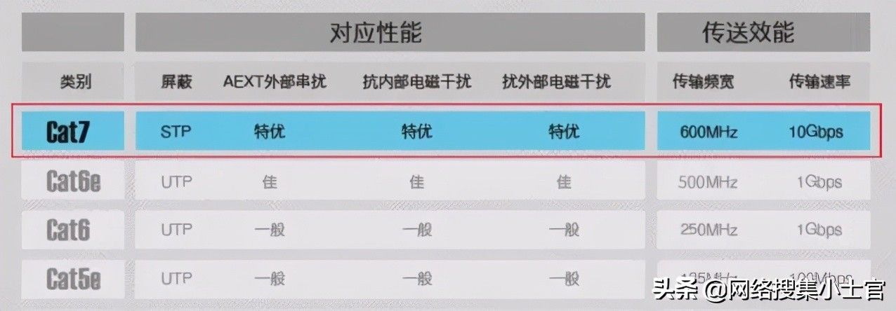 7类网线 最大传输速率万兆(10G);主要用于万兆(10G)网络环境。